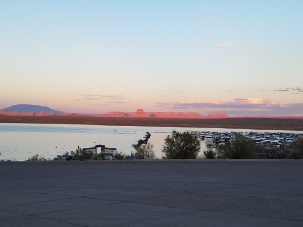 Since Walmart is usually so RV friendly and allows overnight parking, we joined lots of other travelers in Walmart parking lots. We stayed in Paige, AZ the first night – watched a huge party boat get launched, then saw a beautiful sunset over Lake Powel. Then Payson, Utah the second night. We tried to stay in Idaho Falls Sunday night, but they had closed the parking lot to over-nighters for the week – slightly mad, but probably the smartest move on their part!!! Lots of travelers….